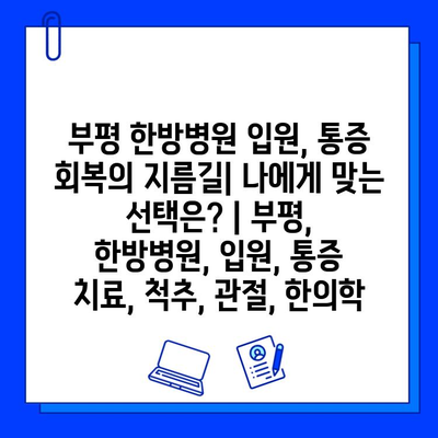 부평 한방병원 입원, 통증 회복의 지름길| 나에게 맞는 선택은? | 부평, 한방병원, 입원, 통증 치료, 척추, 관절, 한의학