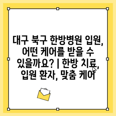 대구 북구 한방병원 입원, 어떤 케어를 받을 수 있을까요? | 한방 치료, 입원 환자, 맞춤 케어