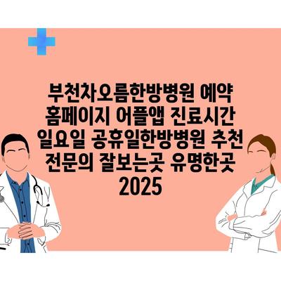 부천차오름한방병원 예약 홈페이지 어플앱 진료시간 일요일 공휴일한방병원 추천 전문의 잘보는곳 유명한곳 2025