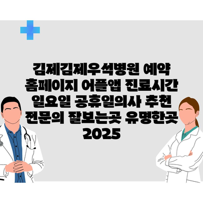 김제김제우석병원 예약 홈페이지 어플앱 진료시간 일요일 공휴일의사 추천 전문의 잘보는곳 유명한곳 2025