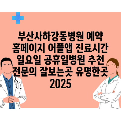 부산사하강동병원 예약 홈페이지 어플앱 진료시간 일요일 공휴일병원 추천 전문의 잘보는곳 유명한곳 2025