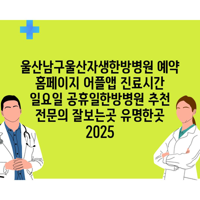 울산남구울산자생한방병원 예약 홈페이지 어플앱 진료시간 일요일 공휴일한방병원 추천 전문의 잘보는곳 유명한곳 2025