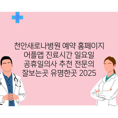 천안새로나병원 예약 홈페이지 어플앱 진료시간 일요일 공휴일의사 추천 전문의 잘보는곳 유명한곳 2025
