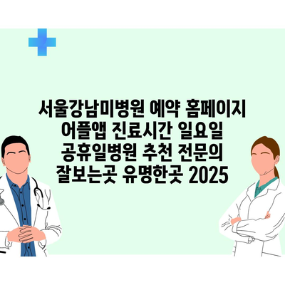 서울강남미병원 예약 홈페이지 어플앱 진료시간 일요일 공휴일병원 추천 전문의 잘보는곳 유명한곳 2025