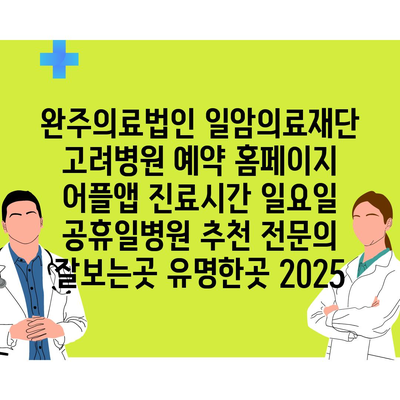 완주의료법인 일암의료재단 고려병원 예약 홈페이지 어플앱 진료시간 일요일 공휴일병원 추천 전문의 잘보는곳 유명한곳 2025