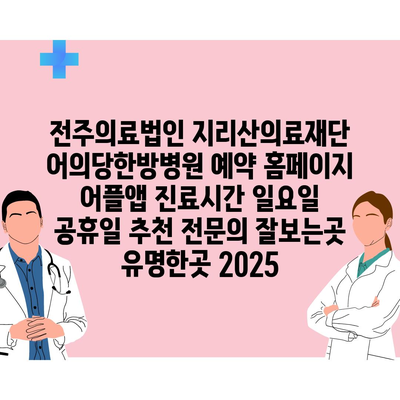 전주의료법인 지리산의료재단 어의당한방병원 예약 홈페이지 어플앱 진료시간 일요일 공휴일 추천 전문의 잘보는곳 유명한곳 2025