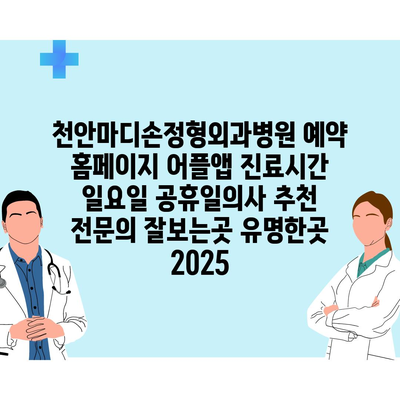 천안마디손정형외과병원 예약 홈페이지 어플앱 진료시간 일요일 공휴일의사 추천 전문의 잘보는곳 유명한곳 2025