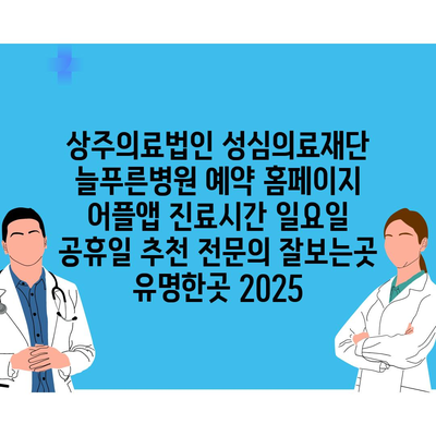 상주의료법인 성심의료재단 늘푸른병원 예약 홈페이지 어플앱 진료시간 일요일 공휴일 추천 전문의 잘보는곳 유명한곳 2025