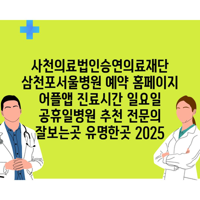 사천의료법인승연의료재단 삼천포서울병원 예약 홈페이지 어플앱 진료시간 일요일 공휴일병원 추천 전문의 잘보는곳 유명한곳 2025