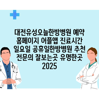 대전유성오늘한방병원 예약 홈페이지 어플앱 진료시간 일요일 공휴일한방병원 추천 전문의 잘보는곳 유명한곳 2025