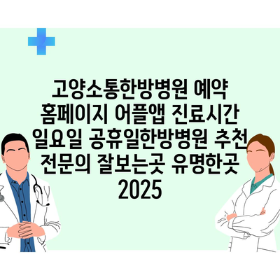 고양소통한방병원 예약 홈페이지 어플앱 진료시간 일요일 공휴일한방병원 추천 전문의 잘보는곳 유명한곳 2025