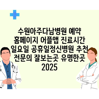 수원아주다남병원 예약 홈페이지 어플앱 진료시간 일요일 공휴일정신병원 추천 전문의 잘보는곳 유명한곳 2025