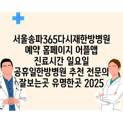 서울송파365다시재한방병원 예약 홈페이지 어플앱 진료시간 일요일 공휴일한방병원 추천 전문의 잘보는곳 유명한곳 2025