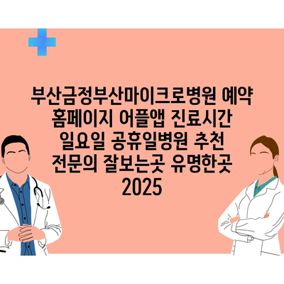 부산금정부산마이크로병원 예약 홈페이지 어플앱 진료시간 일요일 공휴일병원 추천 전문의 잘보는곳 유명한곳 2025