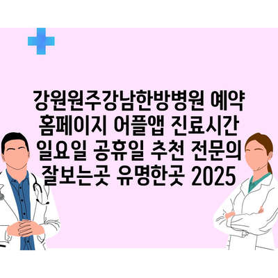 강원원주강남한방병원 예약 홈페이지 어플앱 진료시간 일요일 공휴일 추천 전문의 잘보는곳 유명한곳 2025