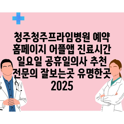 청주청주프라임병원 예약 홈페이지 어플앱 진료시간 일요일 공휴일의사 추천 전문의 잘보는곳 유명한곳 2025