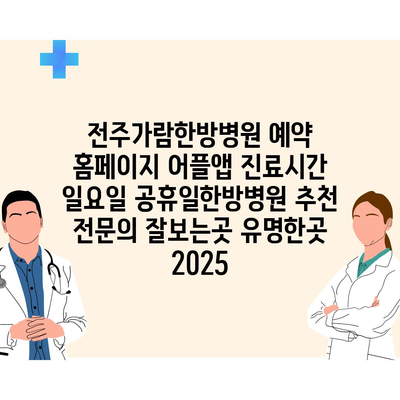 전주가람한방병원 예약 홈페이지 어플앱 진료시간 일요일 공휴일한방병원 추천 전문의 잘보는곳 유명한곳 2025