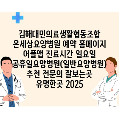 김해대민의료생활협동조합 온세상요양병원 예약 홈페이지 어플앱 진료시간 일요일 공휴일요양병원(일반요양병원) 추천 전문의 잘보는곳 유명한곳 2025