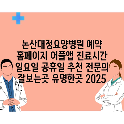 논산대정요양병원 예약 홈페이지 어플앱 진료시간 일요일 공휴일 추천 전문의 잘보는곳 유명한곳 2025