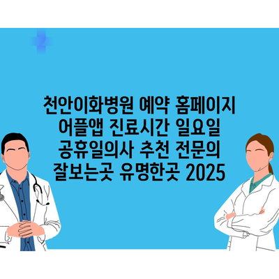 천안이화병원 예약 홈페이지 어플앱 진료시간 일요일 공휴일의사 추천 전문의 잘보는곳 유명한곳 2025