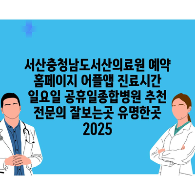 서산충청남도서산의료원 예약 홈페이지 어플앱 진료시간 일요일 공휴일종합병원 추천 전문의 잘보는곳 유명한곳 2025