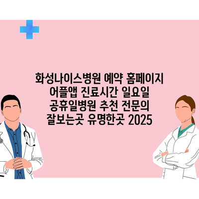 화성나이스병원 예약 홈페이지 어플앱 진료시간 일요일 공휴일병원 추천 전문의 잘보는곳 유명한곳 2025
