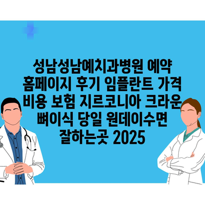 성남성남예치과병원 예약 홈페이지 후기 임플란트 가격 비용 보험 지르코니아 크라운 뼈이식 당일 원데이수면 잘하는곳 2025